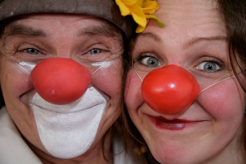 Komödiantenfeuer, verziehen sich die Mundwinkel von ganz allein nach oben. Locci und Frøken Fredl stammen aus einer alten Clownsdynastie. Loccis Großvater war Clown und Fredls Urgroßvater und Vater auch - denn sie sind verwandt -Vater und Tochter! Frøken Fredl mischt alte Clownstradition mit derbem, urigen Witz auf norwegisch, von den Trollen dieser Landschaft beeinflußt. Dort war sie lange Zeit und ist mittlerweile auch familiär verbandelt. Schon mit 6 Jahren stand sie in einem Kinderzirkus und später als Rocksängerin mit Locci auf der Bühne. So reifte, was zusammen auf die Bretter dieser Welt gehört. Lasst euch überraschen... |