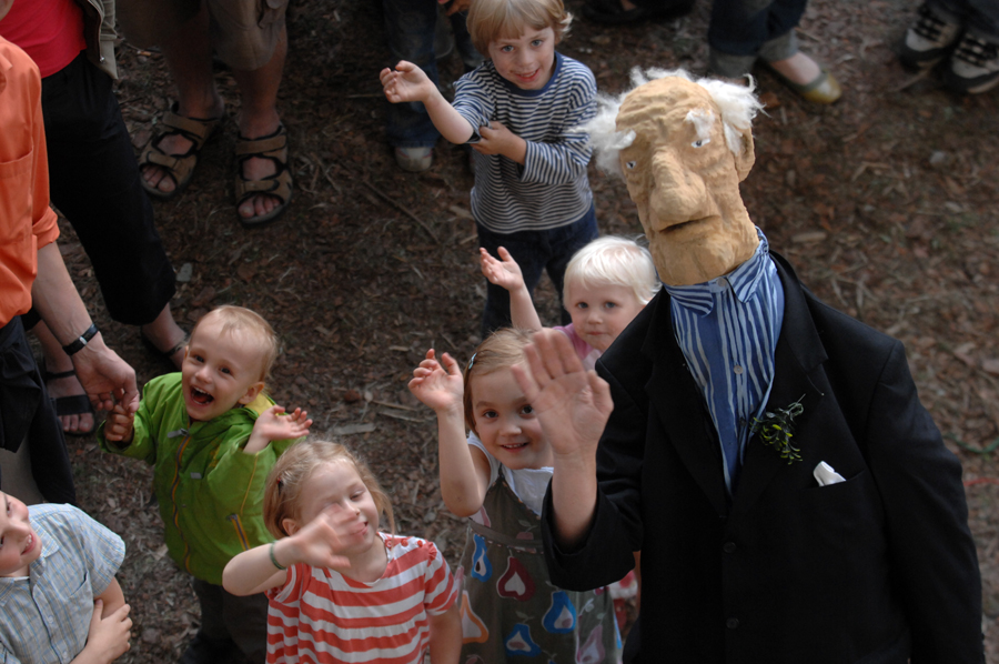Puppenspieler Wolfgang Lasch, alias Herr Arnold Böswetter, von Beruf Allesredner, begegnet den kleinen und großen Menschenkindern ganztägig mit seinen fröhlichen Animationen auf allen Foyeretagen.